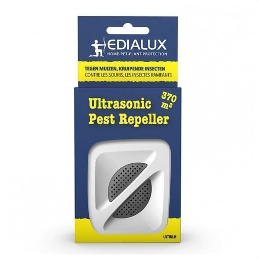 De Edialux Ultrasonic Pest Repeller zend ultrasone geluiden uit die voor de mens niet hoorbaar zijn. Het apparaat is 100% ve-ilig voor honden, katten, vogels en vissen. Werkt op 230V.
