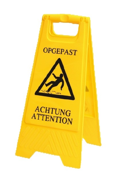 Bord „Opgepast“ 4 talen o.a.Nederlands