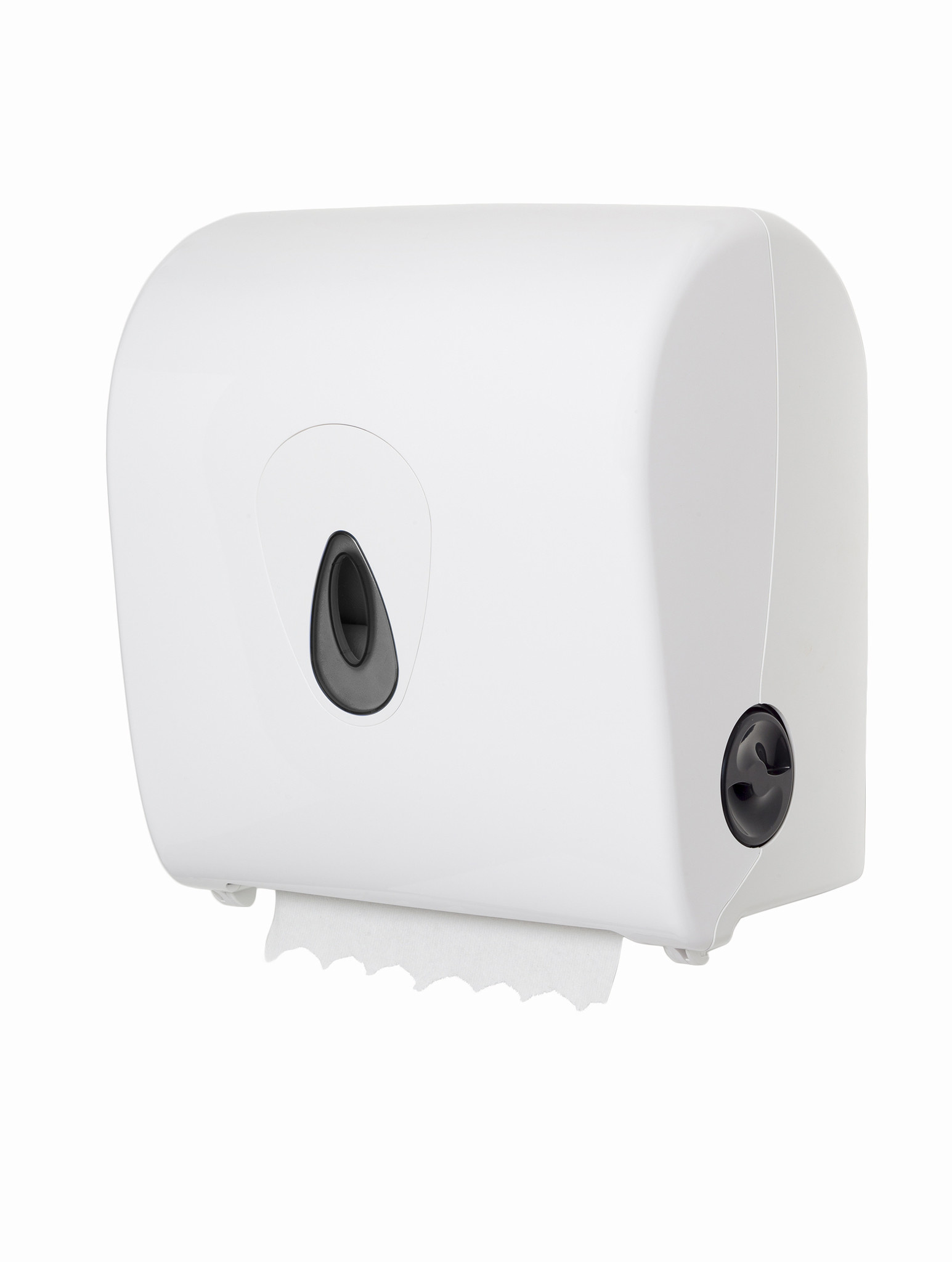 Opvallen zal deze strak vormgegeven handdoekdispenser niet. De smetteloos witte kast valt prachtig weg tegen elke witte muur. De dispenser biedt ruimte aan een papieren handdoekrol van maximaal 210 mm. De papieren handdoek wordt bij een lengte van 23 cm afgesneden.