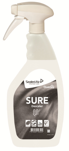 Deze hervulbare fles is ideaal voor Diversey SURE-desinfecterende reinigingsspray en ontkalker. Vul en hervul de fles heel eenvoudig indien nodig. De Diversey SURE-desinfecterende reinigingsspray is milieuvriendelijk en zeer effectief. De oplossing is plantaardig, 100% biologisch afbreekbaar en maakt gebruik van duurzame energiebronnen. Dit geconcentreerde ontsmettingsmiddel is ideaal voor het ontsmetten van alle oppervlakken, zoals vloeren, toonbanken, fornuizen en algemene apparatuur.