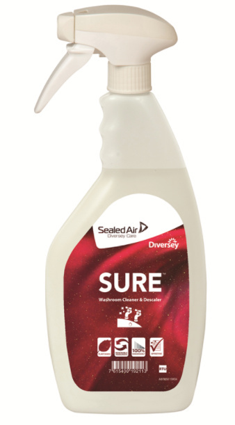 Deze hervulbare fles is ideaal voor Diversey SURE-sanitairreiniger en ontkalker. Vul en hervul de fles heel eenvoudig indien nodig. De Diversey SURE-sanitairreiniger en ontkalker is milieuvriendelijk en krachtig genoeg om opgehoopte kalkaanslag, kalk- en zeepresten in een handomdraai te verwijderen.