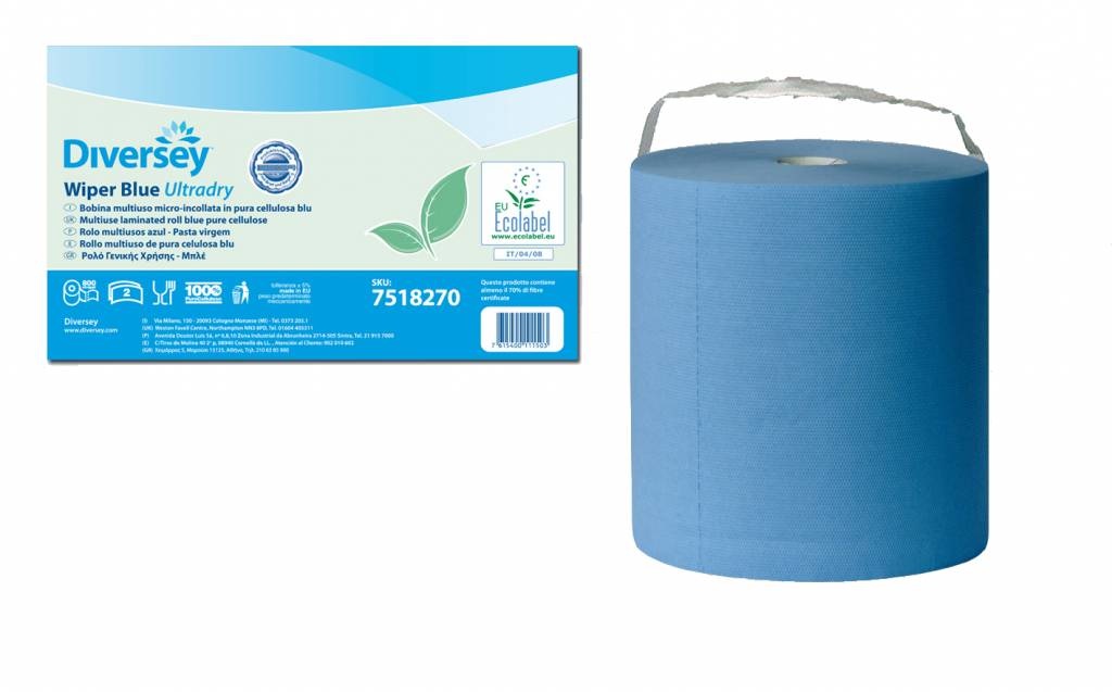 Multirol gelamineerd blauw met EU Ecolabel. - Lagen: 2 - Lengte: 176 m - Vel/rol: 800 - Diameter: 260 mmVerpakking: 2 rollen