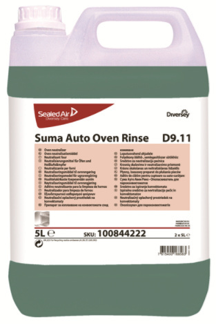 Suma Auto Oven Rinse D9.11 is een geconcentreerd zuur naspoelmiddel. Het product bevat laag schuimende bestanddelen voor snelle en streeploze droging van de oven. Suma Auto Oven Rinse D9.11 voorkomt tevens kalkaanslag. Het is speciaal geformuleerd voor gebruik in ovens met een automatisch reinigingsprogramma.