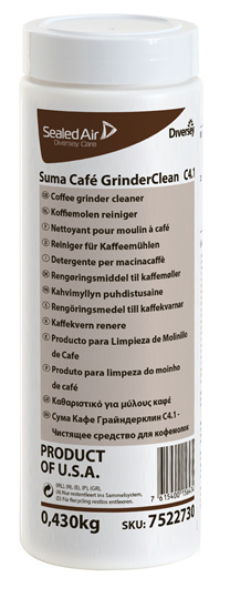 Suma Café GrinderClean is het eerste product ooit ontwikkeld voor het reinigen van koffiemolens. Het is een geheel natuurlijk, glutenvrij, voedselveilig en smaak neutrale combinatie in tabletten in de vorm van een koffieboon. De gepatenteerde formule verwijdert snel en effectief oude koffieresten uit de binnenwerken van koffiemolens. Hiervoor hoeft de molen niet uit elkaar gehaald te worden. Suma Café GrinderClean gebruikers laten het product net als normale koffie door het apparaat lopen.
