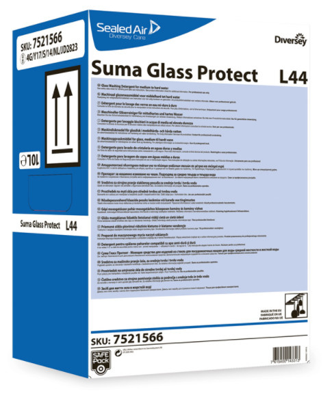 Suma Glass Protect L44 is een alkalisch vloeibaar vaatwasmiddel die geschikt is voor gebruik in een wijde range van glaswasmachines. Naast de krachtige combinatie van alkalische en kalkbindende ingrediënten, die zorgen voor een effectieve verwijdering van vuil en vetten, bevat Glass Protect L44 een speciaal ingrediënt voor de bescherming van glaswerk tegen corrosie en nare geuren. Door de sterkklakbindende eigenschappen wordt kalkaanlsag in machine bij middelhard water voorkomen.
