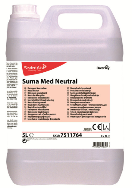 Mild, vloeibaar product voor neutralisatie van residuen van alkalische reinigingsoplossingen op oppervlakken van medische instrumenten, thermostabiele intensive care en anaesthetische apparatuur.