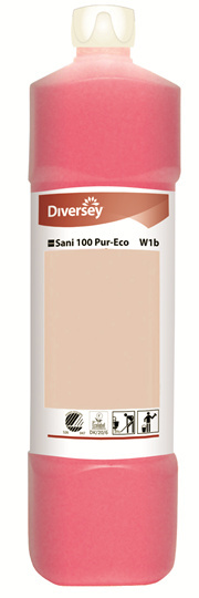 Dagelijkse sanitairreiniger voor alle waterbestendige harde oppervlakken, voorkomt kalkopbouw en opbouw van zeepresten. Sani 100 Pur-Eco voldoet aan alle criteria van het EU Flower en Swan ecolabel.