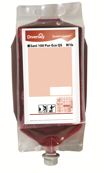Sanitairreiniger voor de dagelijkse hygiëne van toilet-, bad- en doucheruimten. Voorkomt kalkaanslag. Met extra parfum en kleurstof voor gemakkelijk doseren. Door de specifieke formule zijn gevarensymbolen niet nodig. Te gebruiken met de QuattroSelect.