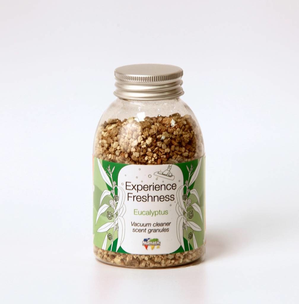 Drie kleuren, drie geuren: Flower, Limonella en Eucalyptus. Drie soorten geurkorrels voor in de stofzuigerzak die zorgen voor een frisse geur, thuis of op ‘t werk. Het gebruik is eenvoudig. Kies de geur die prettig ruikt, vul het dopje van de fles met korrels, strooi de korrels op het tapijt en zuig de korrels op in de stofzuigerzak. Tijdens het stofzuigen verspreidt de geur zich subtiel via het rooster op de achterkant van de stofzuiger door de ruimte. Bovendien voorkomen de geurkorrels nare luchtjes in de stofzak. Verkrijgbaar per geur en als set van drie geuren.