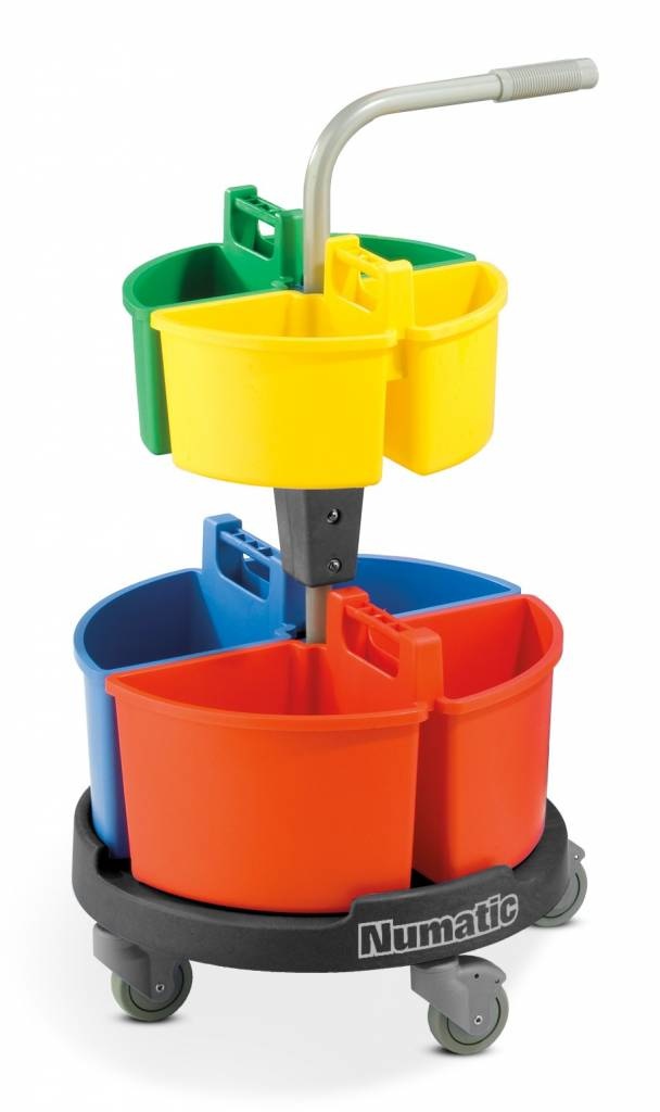 De compacte vorm gaat goed samen met de vele mogelijkheden die deze serie werkwagens biedt voor professioneel gebruik. De NCG 4 carrousel wordt standaard geleverd met: twee 4 liter rode trays, twee 10 liter rode trays en 80 mm zwenkwielen. Met de NCG 4 breng je hulpmiddelen eenvoudig mee. Ook kunnen de emmers gebruikt worden voor natte reiniging.