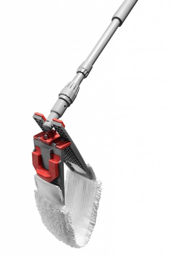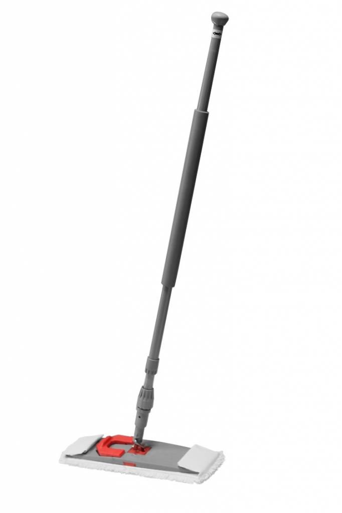 De set bestaat uit de NuTechMop Hang-on welke u kunt bestellen onder artikelnummer V501002, een universele vlakmophouder die u zowel voor Hang-on als Drop-off moppen kunt gebruiken (artikelnummer 627535) en een telescopische mopsteel voorzien van comfortgrip en draaibare knop aan het einde van de steel wat ergonomisch verantwoord werken bevorderd. (artikelnummer 629074).