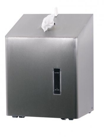 De poetsroldispenser midi kan gemakkelijk op een tafel worden geplaatst. Het papier kan aan de bovenzijde worden uitgenomen en worden afgescheurd. Aan de voorkant bevindt zich een venster voor een snelle inhoudscontrole.