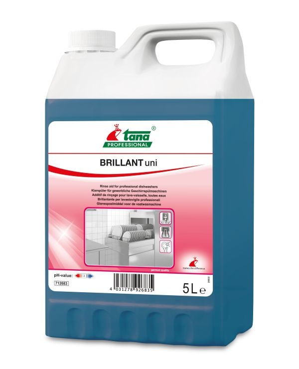 BRILLANT uni is een kosten- en tijdbesparend spoelmiddel, dat de droogtijd verkort en resten als gevolg van de alcohol die het bevat, snel oplost.