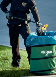 Een robuuste en weerbestendige 180 l afvalbak als multifunctioneel alternatief voor plastic zakken. De perfecte aanvulling op de professionele UNGER-grijptangen.