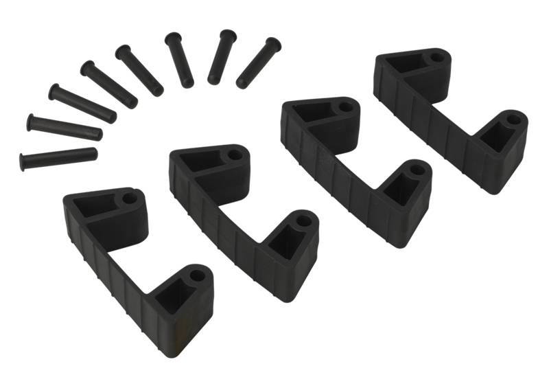 Inhoud: 4 flexibele rubber klemmen, 8 pinnetjes