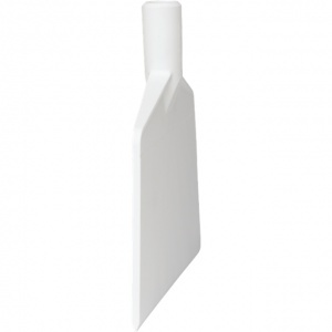 Effectieve kunststof schraper, verwijdert zonder krassen aangekoekt vuil, deeg, caramel, en dergelijke van vloer, werkbladen, transportbanden. Kleurcodering is mogelijk door middel van de steel.