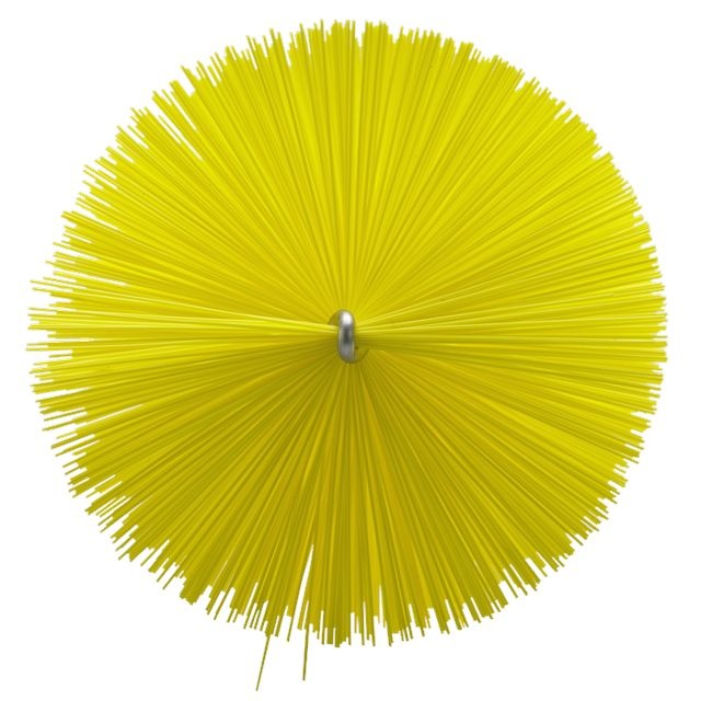 Borstelkop met draadverbinding; past op flexibele kabels 53515 en 53525 en verlengstuk 5346. Voor effectieve inwendige schoonmaak van leidingen.