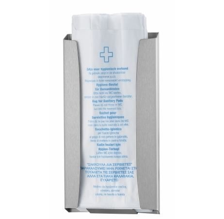Wij hebben hygiënezakjeshouders in verschillende uitvoeringen. Deze versie is geschikt voor papieren hygiënezakjes, die eenvoudig uit de houder te halen zijn. Door het open systeem kan de beheerder in één oogwenk de inhoud checken en, indien nodig, snel bijvullen.